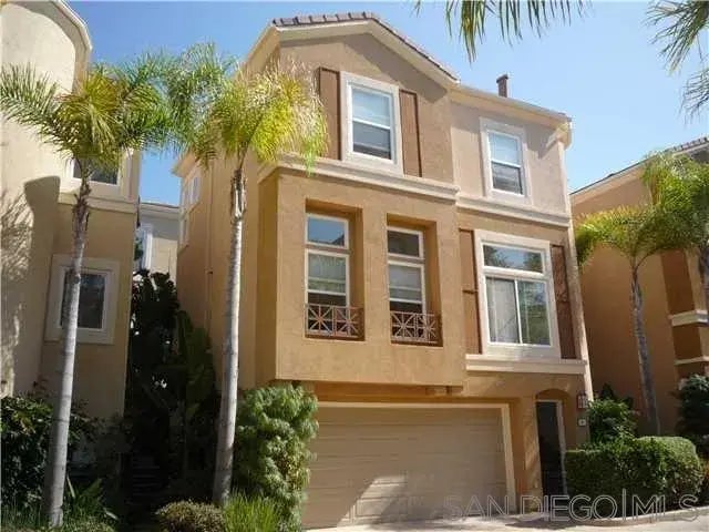 Detached 3 story home in Antares Community of Carmel Valley. Light and bright with high ceilings, maple floors, dramatic slate stairways. 2 bedrooms and 2 full baths on third floor. Master has attached sitting room/office. 3rd bedroom with half bath on lower level. Fireplace in livingroom. Attached 2 car garage. Community has 2 pool, spa and workout facility. Walk to all Carmel Valley's schools grades K-12, library, theater, Del Mar Highlands, One Paseo, restaurants and shopping, Community Center. Less than 2 miles to beach and easy freeway access. Available for rent August 1 with a yearly lease.