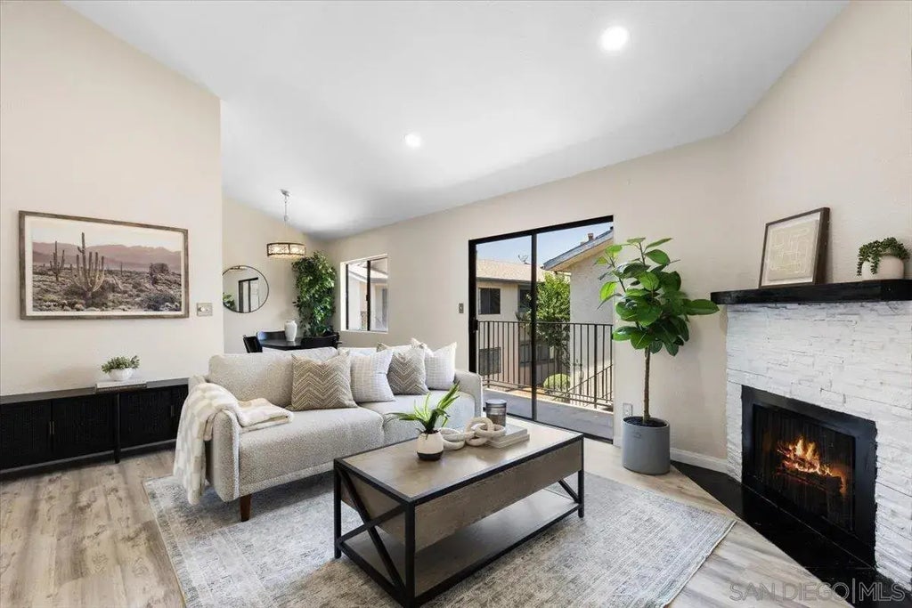 Welcome to your dream home at 12650 Lakeshore Drive, Unit 156, in charming Lakeside, CA. This exquisite 2-bedroom, 2-bathroom top-floor unit spans 884 square feet and has been fully remodeled to offer both luxury and convenience. Step inside to discover elegant luxury vinyl plank flooring that flows throughout, complemented by the warmth of a fireplace and the spaciousness of vaulted ceilings. The modern kitchen and renovated baths boast high-end finishes, including a double sink in the primary bathroom, ensuring comfort and ease. Enjoy the convenience of having an in-unit washer and dryer, and ample private storage space for all your needs. Step out onto your private balcony, or relax on the patio, perfect for unwinding and enjoying the serene surroundings. This home comes equipped with central air conditioning and heating for year-round comfort. The gated community features a range of desirable amenities, including a communal pool, assigned parking, and additional guest parking, offering convenience and peace of mind. With its prime location and thoughtful renovations, this home is a rare find. Whether you're enjoying the high ceilings or the luxury of modern upgrades, this unit offers a smart blend of style and function, promising a delightful living experience. Don't miss the opportunity to make this remarkable property your own.