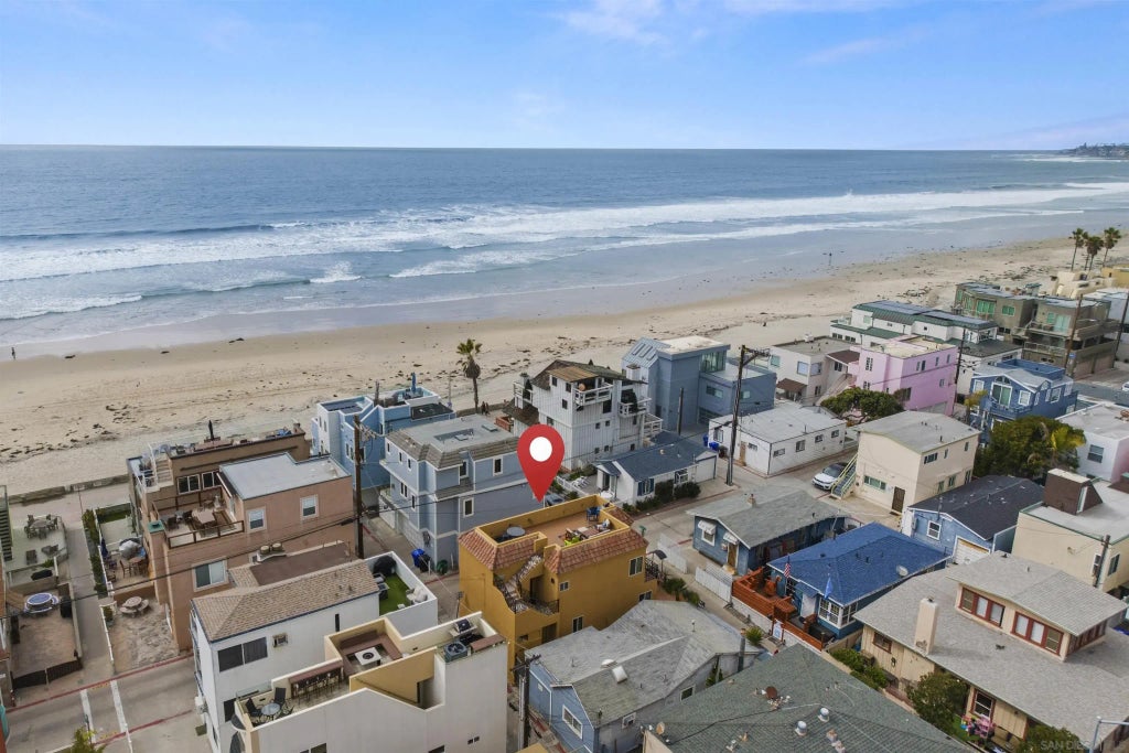 Spanish-Style 3Br, 3Ba Mission Beach Home with Ocean and Bay Views! 60 feet from the boardwalk and sand. Just steps to the Pacific Ocean! This beautifully designed Mission Beach retreat seamlessly blends indoor and outdoor living, featuring an expansive 450 sq. ft. rooftop deck with Ocean, Bay and Sunset Sunrise views. Perfect for entertaining or unwinding in the fresh ocean air. Fantastic opportunity to easily build 3rd story living area and add square footage to this special home. Downstairs patio provides escape after a day on the sand. Inside, the open-concept lower level is designed for effortless flow between the kitchen, dining, and living areas, creating a spacious and inviting atmosphere. Modern finishes, open gourmet kitchen , and ample seating for guests make it perfect for hosting or simply enjoying beachside living. The primary suite features a private balcony with ocean view, ideal for morning coffee or evening sunsets. This prime location puts you on a short walk to Belmont Park, the Mission Bay Boardwalk, and the Mission Bay Aquatic Center and Yacht Club. Enjoy world-class water activities, scenic bike rides, and some of San Diego’s best beachfront dining and shopping. SeaWorld, Downtown San Diego and other top attractions are only a short drive away. Whether a full-time residence, vacation getaway, or investment opportunity, this is a rare chance to own a slice of paradise in one of San Diego’s most sought-after beachfront communities. Don’t miss out!
