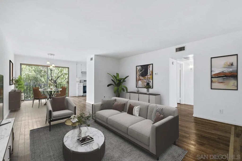 Experience this immaculate and bright, move-in-ready condo located in a wonderfully serene Hillcrest neighborhood. The spacious, single-level layout offers ample room, complemented by beautiful wood floors, modern appliances, and peaceful views out the windows. The unit has been freshly painted and professionally cleaned, and has new bathroom vanities and a recently installed combo washer/dryer conveniently located inside the unit. The building features secure entry, an elevator, a pool area with BBQ facilities, additional storage space, free community laundry, and a secure parking spot. Perfectly positioned just blocks away from dining, shopping, and Balboa Park; this location is ideal! Move-in costs include the first month's rent, security deposit equal to 1.5 times the rent amount, pet deposit if applicable, $200 move-in fee and $200 move-out fee payable directly to the HOA.