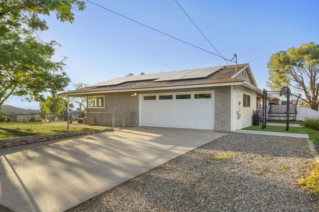 Nestled atop a private cul-de-sac in the scenic foothills of Lakeside, this beautifully maintained single-level home offers 3 bedrooms, 2 bathrooms, and 1,658 sq ft of bright, open living space. Situated on a generous 0.25-acre lot, the property includes professionally designed, permit-ready plans by Murray Lampert Design for a 1,200 sq ft ADU. An excellent opportunity for multigenerational living or rental income. Positioned on a lower-level parking area, the ADU site offers what most properties can’t: ample space to discreetly park your 30’+ RV, side-by-side, boat, or multiple vehicles out of sight from the main home. Inside, enjoy vaulted ceilings, a cozy fireplace, and an updated kitchen with ample cabinetry and a built-in wet bar featuring a beverage fridge and wine rack, perfect for entertaining. The spacious primary suite offers comfort and privacy, while fresh paint and new carpet throughout the home provide a clean, move-in-ready feel. Perched above the neighborhood, the property offers sweeping 180-degree views of the mountains from a covered deck. Step into your backyard oasis with a sparkling pool and spa, an illuminated retaining wall and staircase, and a gazebo featuring electrical outlets, perfect for a TV, blender, smoker grill, and more. Ideal for entertaining or relaxing under the stars. Conveniently located near Lake Jennings, El Capitan Reservoir, parks, casinos, trails, and top-rated schools. This home offers the perfect blend of comfort, views, and versatility in a peaceful, family-friendly setting.