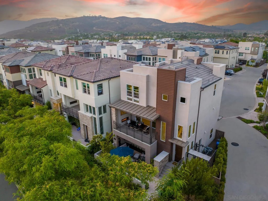 Enjoy gorgeous canyon views & ocean breezes in this contemporary 3bd/3.5ba condo located in the sought after Del Sur community. Premium corner lot location allows privacy off of 3 separate entertainment areas - lower patio level, 2nd story balcony & side patio. Wide plank vinyl flooring throughout main living areas and stairs. Large picture windows & balconies provide abundant natural light. Bottom fl has bd/ba, 2nd fl is main living area & 3rd fl has primary suite, secondary bdrm & laundry. Walk one block to top rated Poway schools.