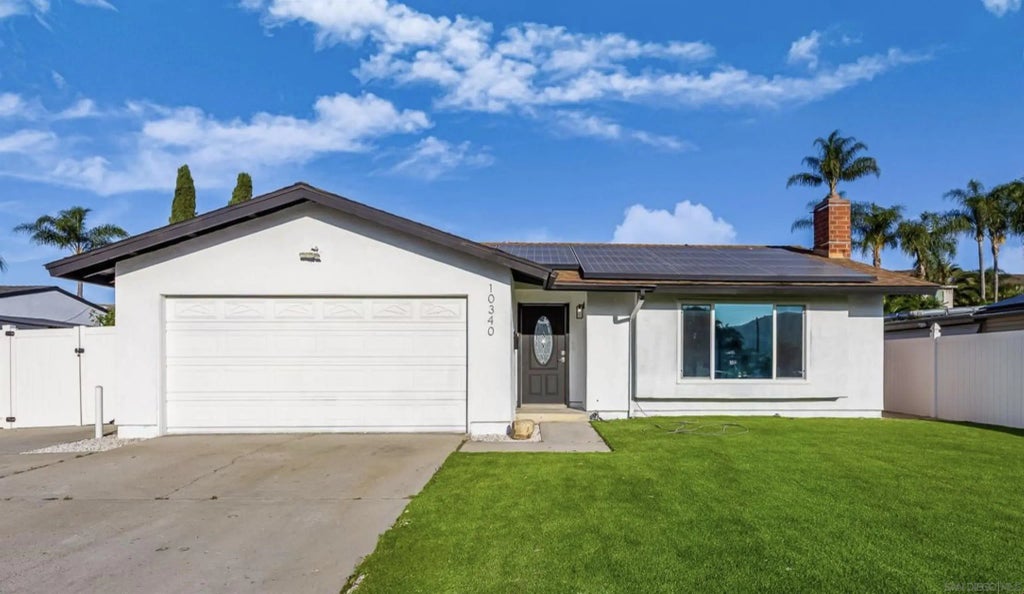Welcome to this beautifully renovated single-family home in North Santee – fully upgraded, turnkey, and ready to impress! Offering 4 bedrooms and 2 baths across 1,777 sq ft on a spacious 7,100 sq ft lot, this home feels like new throughout. Enjoy stylish new flooring, fresh paint, skylights, and updated lighting that create a bright, inviting ambiance. The kitchen is a chef’s delight with modern cabinets, gleaming countertops, and stainless steel appliances. Bathrooms are fully renovated with sleek fixtures and tile accents. The open floor plan flows seamlessly, enhanced by abundant natural light. Every interior door has been replaced for a cohesive modern design. A standout feature is the high-end French double-door multi-purpose room, perfect as a private office, cozy bedroom, or formal living space. Exterior upgrades include fresh paint and low-maintenance artificial turf landscaping for instant curb appeal. The large backyard offers ample space to relax or entertain, with a workshop/storage shed for added utility. Additional highlights include a two-car garage and plenty of parking for guests, along with owned solar panels for energy savings and sustainability. This move-in-ready gem combines character, functionality, and style in an exceptional Santee residence.