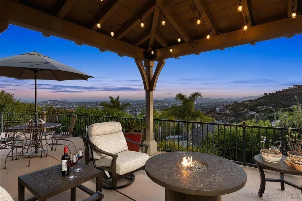 Absolutely breathtaking, single-level north Escondido home situated on a generous approx. 1/2 acre lot with unparalleled, nearly 360-degree views! Enjoy ethereal vistas from multiple vantage points on the property, including the expansive, serene, & private patio which showcases views of distant mountains, hilltops, & city lights throughout North San Diego County. Fabulous curb appeal & a gated entry courtyard with a bubbling fountain set the stage for this turnkey home. Inside the courtyard, you will find numerous peaceful sitting areas to enjoy the quiet atmosphere that this entire property provides. With high ceilings, loads of natural light, & an amazing 4-bedroom floor plan, this is the sophisticated, move-in-ready property you've been waiting for. A charming natural gas fireplace anchors the family room, while the kitchen is a chef's dream with an oversized eat-at island, high-end appliances, a walk-in pantry, & abundant cabinet storage. The primary suite retreat includes a large, light-filled bedroom, walk-in closet, & a spa-like ensuite bath with dual-sink vanity, soaking tub, & separate walk-in shower. French doors lead out to the beautifully landscaped yard—a space designed for ultimate relaxation & enjoyment of the stunning, wraparound views. A separate guest suite with private interior access right off of the entryway is a high point of the incredible floor plan & offers the ideal space for family, visitors, or multi-generational living. No HOA or Mello-Roos! Situated on a cul-de-sac in one of Escondido's most desirable communities. SEE SUPPLEMENT.