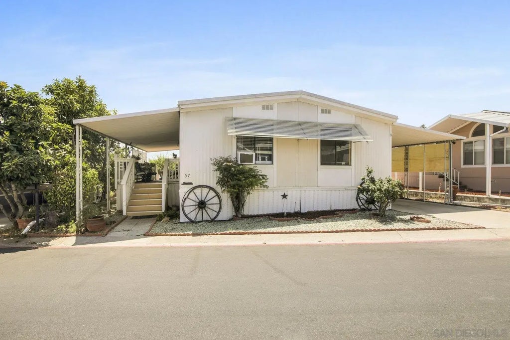 Welcome to Singing Hills Mobile Estates! Nestled in the highly desirable, all-ages community of Rancho San Diego—right across from Valhalla High School—this beautiful manufactured home offers comfort, space, and convenience. Featuring 3 spacious bedrooms and 2 full bathrooms, the home welcomes you with an open-concept layout connecting the living room, dining area, and kitchen—perfect for entertaining or relaxing with family. The primary suite is thoughtfully positioned for added privacy, separated from the other two bedrooms, and includes its own full bathroom.