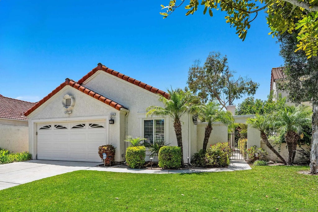 Beautiful single level home with expansive golf course views in desirable Bernardo Heights! This open floorplan boasts a gorgeous chef’s kitchen, remodeled to incl custom white cabinetry, a large island, granite countertops and high end SS appliances! The primary bath and guest bath have also been remodeled. Other features include dual pane vinyl windows and sliding doors, plantation shutters, vaulted ceilings, and a gated courtyard entry. This lovely home is situated on the 16th green.