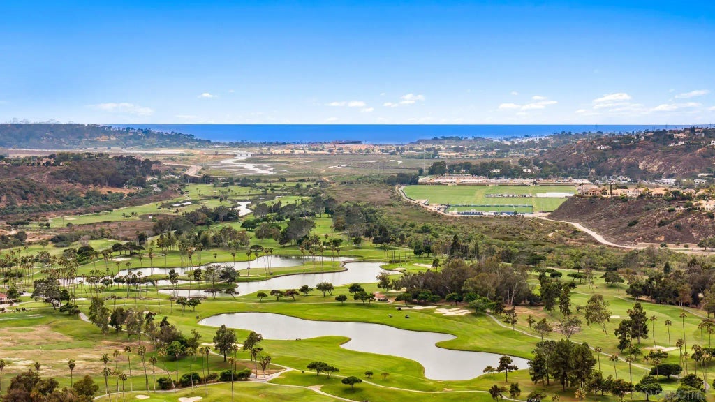 Perched on the rim in the coveted gated community of Senterra, 14351 Via Baroda lives like a single-level home with the primary suite nestled on the first floor. It showcases breathtaking 180-degree panoramic views that stretch from the lush greens of La Valle and Fairbanks Ranch Golf Courses to the rolling hills of Pacific Highlands Ranch, Black Mountain, and Poway. Thoughtfully remodeled by builder Danny Hampel, the home now features an expanded floor plan with modern open-concept living that enhances both functionality and flow. Walls were removed and square footage was added to create generous, light-filled spaces designed for comfort and ease. Enjoy serene mornings and sunset dinners overlooking the lake at the 14th hole of the Del Mar Country Club, all from the comfort of your dining room. The backyard is an entertainer’s dream, complete with a built-in spa and a sleek glass wall that maintains uninterrupted views of the golf course, surrounding estates, and the iconic hot air balloons that drift through the canyon. Tucked on a quiet cul-de-sac, the location encourages peaceful walks through the beautifully manicured Senterra community. Residents also enjoy access to resort-style amenities, including multiple community pools perfect for relaxing under the San Diego sun. This is a rare opportunity to enjoy luxury, comfort, and an unmatched lifestyle in one of Rancho Santa Fe’s most sought-after neighborhoods.