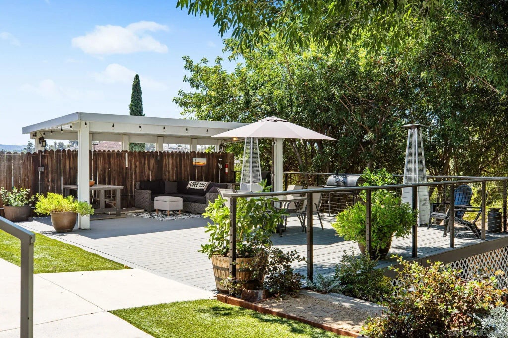 Tucked away at the end of a private drive, this charming single-level home offers peace, privacy, and plenty of space on a fully usable 1/3-acre lot. Surrounded by lush, mature landscaping and completely fenced and gated, this property is an oasis of serenity and functionality—complete with owned solar for energy efficiency and cost savings. Enjoy farm-to-table living with raised garden beds ready for seasonal planting, while multiple patios provide the perfect setting for morning coffee, al fresco dining, or large gatherings. A spacious Trex deck—durable and termite-resistant—offers the ideal outdoor retreat for grilling or soaking in golden hour views. Inside, the gourmet kitchen features quartz countertops, ample cabinet space, and room to create and entertain. A bright formal living room welcomes guests at the front of the home, while a cozy, cabin-style family room at the back provides the perfect space to unwind. Don’t miss this rare opportunity to own a private, spacious home with character, comfort, and endless outdoor potential.