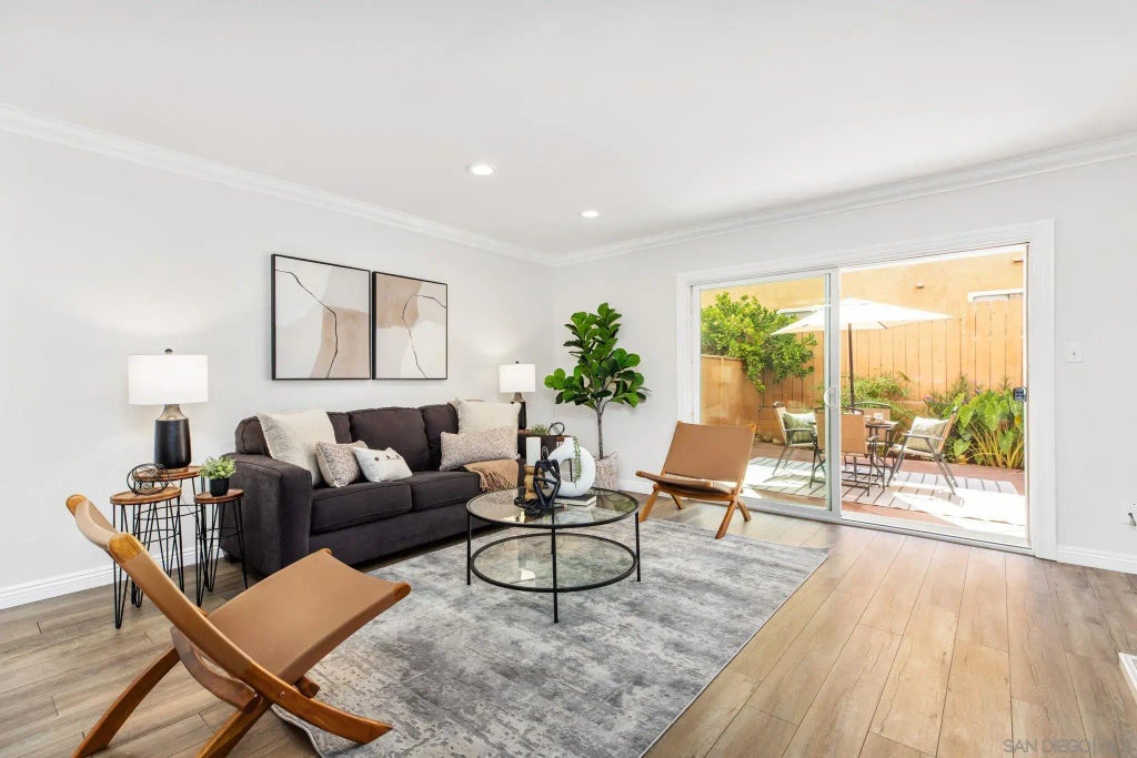 Enter this beautifully updated two-story home featuring fresh interior paint, stylish wood laminate flooring on the main level, and brand-new carpet upstairs. The remodeled kitchen shines with modern white Shaker cabinets and granite counters, offering a clean and timeless look. All bedrooms are on the larger side and conveniently located upstairs, providing privacy and separation from the living areas. Enjoy an abundance of natural light from the many windows throughout the home. Outside, relax or entertain in the private backyard. Additional highlights include side-by-side parking spaces and a welcoming, move-in-ready interior. Close to shops, restaurants, and all the events at the new Snapdragon stadium, don't miss out on this one!