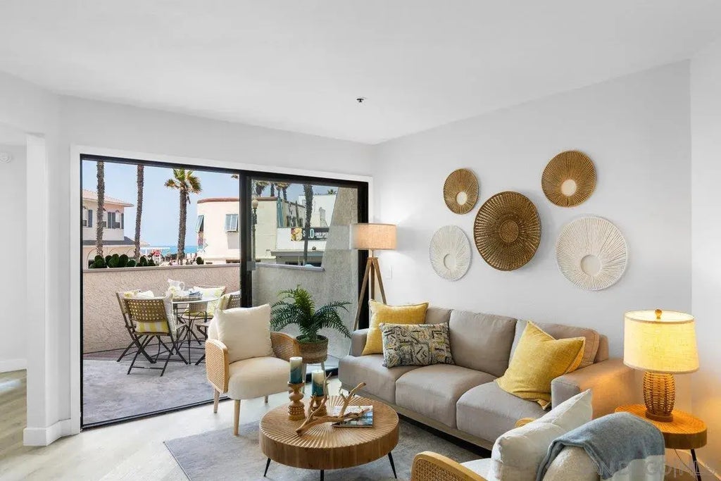 Location, location, location! Turnkey ocean-view condo in a prime Pacific Beach location just steps to the sand, boardwalk, shops, and top restaurants. This 1-bedroom, 1-bath unit lives large with an open layout and space in the living room to add a Murphy bed. Enjoy ocean and Crystal Pier views from both the living room and bedroom, plus a private balcony and an expansive front patio perfect for indoor-outdoor living. Fully updated and eligible for minimum 7-day vacation rentals—ideal for short-term income or a personal beach getaway. Includes secure parking, private storage locker, and access to a community spa and ocean-view sun deck.