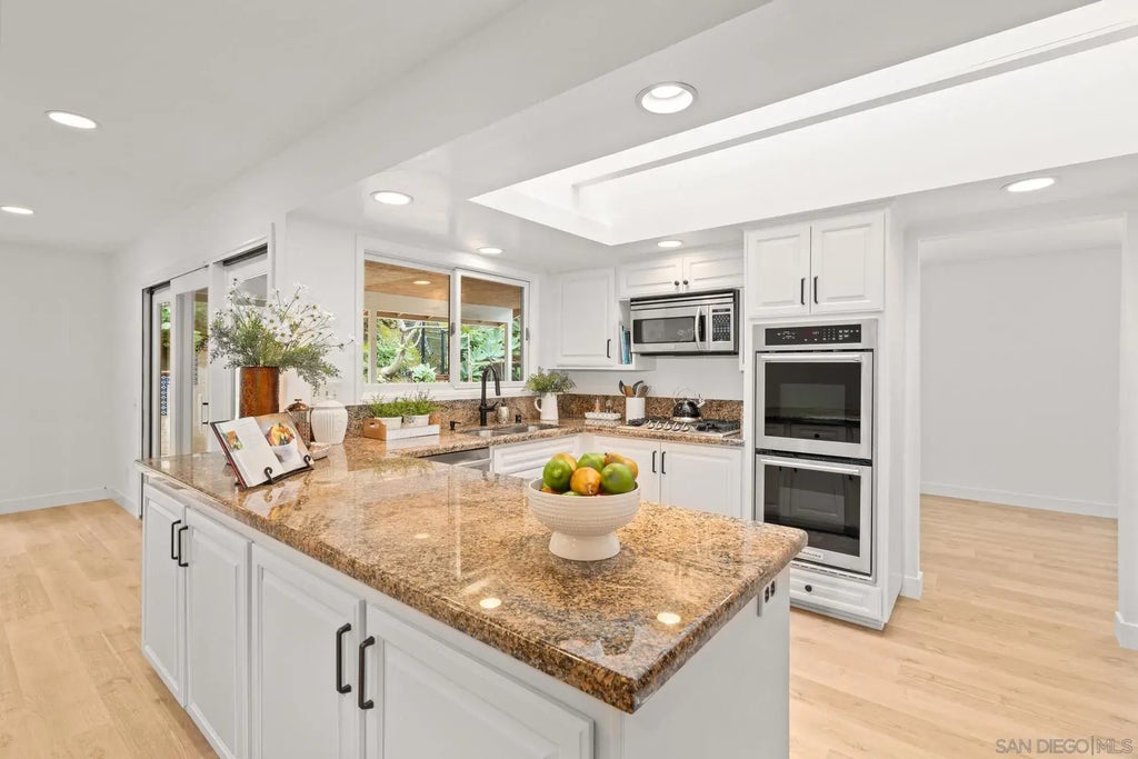 Wow ~ SINGLE LEVEL, ranch style home, tucked away on one of upper Del Cerro’s finest cul-de-sacs! Private backyard w 3.5 ft deep heated lap swimming pool and easy-care lush landscaping featuring mature palm trees. Large, covered patio/loggia serves as Outdoor Living Space w dedicated bar-b-q area ~ perfect for outdoor entertaining! Beautiful kitchen w granite countertops, large peninsula island, KitchenAid double oven, Bosch dishwasher, plenty of pantry space! Entire home has fresh paint inside/out in light, bright neutral palette to complement your modern or traditional style! Enjoy an interior Laundry Room connected to a 2-car garage complete w workbench! 4th BDR easily used as Den or Office!