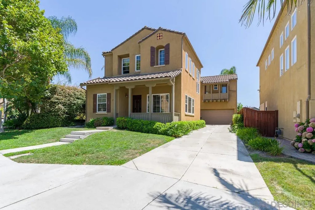 Welcome home to your sun-filled estate. This residence three in Villamontes at Torrey Del Mar features high volume ceilings upon entry with an airy and bright formal living room with newer laminate flooring. Tucked by the front of the home is one full bedroom downstairs with direct access to the full bathroom (bathroom also has access from hallway). Wait till you see the masterfully done chef's kitchen with extraordinarily amounts of cabinetry, newer refrigerator, large island, granite counter tops, stone back splash, and a large nook perfect for in-kitchen dining. Separate formal dining room just steps away and may be flexible in utility, also with newer laminate flooring. Direct access from your nook to the exterior driveway which may be convenient for hauling in groceries, etc. Cozy family room with newer wood laminate flooring opens from the kitchen and bar like seating adjacent in to the kitchen for seamless connectivity. Direct access to your private backyard with wonderful canyon views! Very large storage room with separate entry from the rear yard! Oversized laundry room with newer washer/dryer and your own sink and plenty of storage downstairs. Upstairs features a jack and jill style layout with two bedrooms (both with walk-in closets) connected with a full bathroom in between. Master bedroom is absolutely grand with a plethora of windows giving you a grand feel and your own private balcony overlooking the lush rear yard and canyon view. Master bathroom features new tile flooring, an XL walk-in closet, opposite sinks/vanities, a large soaking tub and separate