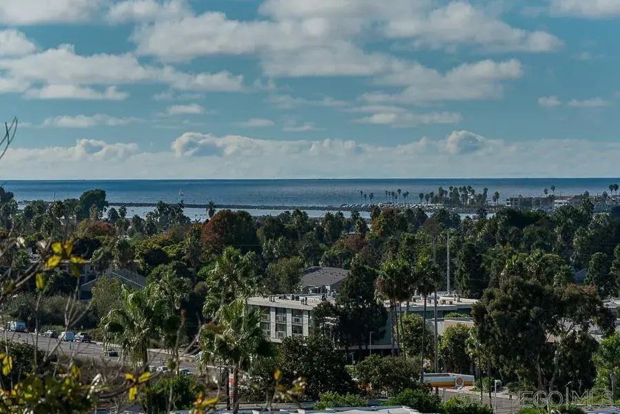 Ocean Views - Remodeled almost 1,200 sq ft. Large 2bed/2ba. See the fireworks in upstairs corner prime location! Custom newer kitchen and bathrooms, triple pane, black trimmed window. Bright, spacious, one-of-a-kind property. Floor-to-ceiling slate fireplace set with custom built-ins for entertainment/décor. This home hosts plenty of storage, fantastic natural sunlight. Open layout, W/D and balcony. Pool and Spa, 2 assigned covered parking spaces. Pets neg. Close to grocery, gym, coffee and restaurants and other shopping.