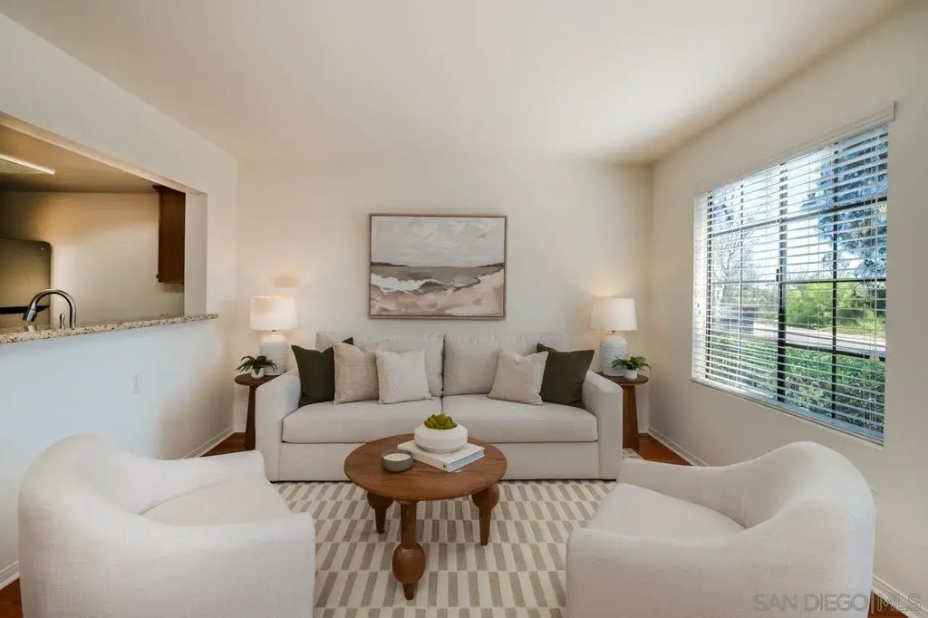 Charming ground-floor condo in Rancho Bernardo, freshly painted and move-in ready! Featuring real wood flooring throughout living areas, a cozy layout, and a private patio with peaceful mountain views. The kitchen offers a new refrigerator and new dishwasher, while the home also includes in-unit washer and dryer plus A/C for year-round comfort. Community amenities feature a pool, spa, fitness center, and clubhouse, along with plenty of guest parking. Close to shopping, dining, golf, scenic trails, and the freeway—this home offers the perfect blend of comfort, convenience, and location!