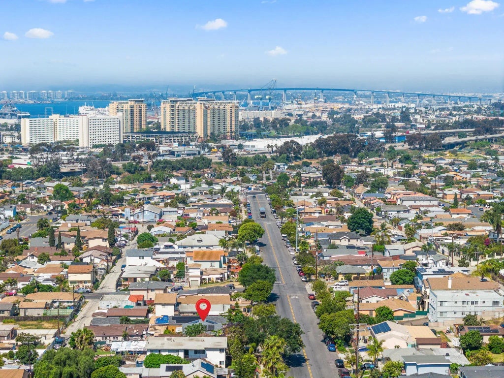 Fully furnished single-story home east of Downtown San Diego with short-term rental income already in place. This 3-bed, 2-bath home is currently operating as a successful Airbnb with strong reviews and consistent bookings. Inside, the open layout includes a bright living area, dining space, and a kitchen with a gas range, stainless steel appliances, and a tile backsplash. The primary bedroom has its own bathroom and French doors that open to the backyard. The second bedroom includes bunk beds and a built-in desk, ideal for kids or remote work. Both bathrooms are updated, and there’s in-unit laundry. Outside, step into your own private tropical retreat with lush greenery, a spa, fire pit, and outdoor seating—perfect for relaxing or entertaining. Gated driveway and leased solar. Located minutes from Downtown, Coronado, Balboa Park, and major freeways. Whether you want a family home or an investment property, this one is move-in ready and flexible for both.