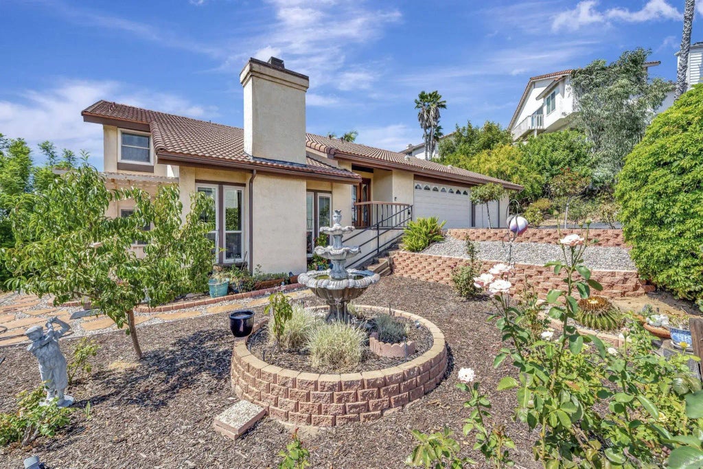 Just reduced in Avocado Estates is this artisan adorned home with 270° views from covered patios and your private jacuzzi. Separate living and family rooms each have fireplaces and are open to the dining area and magnificent kitchen all flooded with natural light and views. Fully owned solar power, high efficiency HVAC, dual pane windows, ceiling fans and solatubes make this home comfortably sustainable. Stained glass entry to custom inlaid wood floors, breathtaking cathedral ceilings, spacious bedrooms and baths along with the lavish landscape create a true sanctuary. This highly desired gated community in the heart of Hidden Mesa has rolling hills with lush avocado, fruit and shade trees, private hiking trails, a lake, pool/spa, recreation center and wonderful homes nestled throughout.
