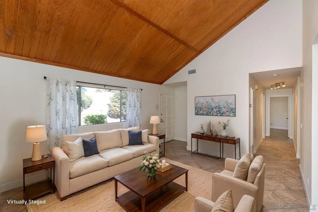 Welcome to this charming single-story 3-bedroom, 2-bathroom townhome designed for both comfort and convenience. With a wood beam vaulted ceiling in the living room, and durable tile flooring running throughout the home for easy care. The kitchen flows into the dining area, creating the perfect hub for family meals and gatherings. The primary suite includes its own bathroom, and two additional bedrooms plus a second full bath offer flexibility of use. Recent upgrades include a new HVAC system and water heater, giving peace of mind and energy efficiency. An attached 2-car garage provides secure parking and added storage, and the private patio offers an outdoors space for a variety of uses. As part of a welcoming community, residents enjoy access to a refreshing pool and soothing jacuzzi. With a practical layout this home is an excellent opportunity for comfortable everyday living.