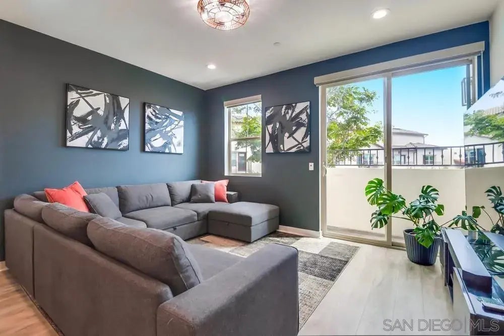 Stunning tri-level townhouse features 2 Beds, 2.5 baths, an office, and an open floor plan that seamlessly connects living, dining, and kitchen areas. Upgrades includes Paid Solar, Water Filtration for the entire house, white shaker cabinetry, the upgraded stainless steel appliances, oversize white quartz center island with large neutral vinyl planks through out and designer paint. Home includes a convenient 2-car side-by-side garage with Epoxy flooring, tankless water heater and modern finishes throughout. Perfectly located with easy freeway access, you'll be minutes from shopping centers, restaurants, and diverse dining options. Downtown San Diego, iconic landmarks like Balboa Park, and world-famous beaches including Mission Beach and La Jolla are all just 20 minutes away. Experience the best of San Diego living with modern comfort and unbeatable convenience to everything America's Finest City has to offer. Welcome Home.