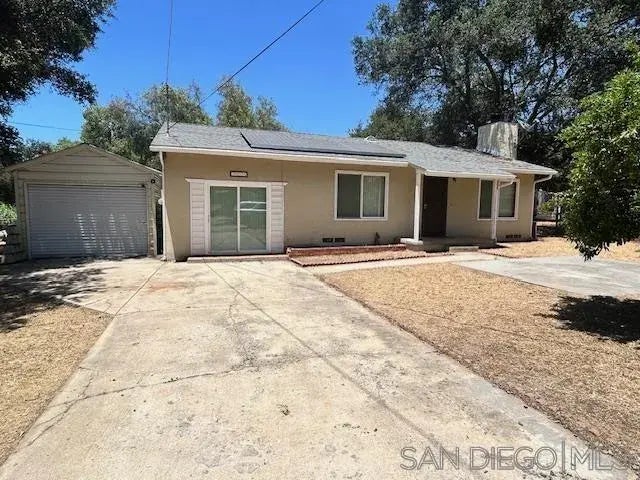 Welcome to this inviting Alpine home hidden beneath the mature oak trees that seems out of town but close to shopping, gas stations, grocery stores, community center/library, hiking, equestrian activities, Viejas Casino & Resort, starry nights, and beautiful views. Spacious and quaint, it has been loved for many years and has upgrades such as a paid off Tesla powered solar system that zero's out the meter, recessed cans and lighting fixtures, sliding doors and vinyl dual-paned windows. This serene setting is so cozy on almost a half-acre that has mature fruit trees such as lime, grapefruit, orange and tangerine, along with a peaceful seasonal creek that runs through the side of the property. There are ceiling fans in every room for the warm summer days, and a fireplace during those chilly winter nights. Has a mini split in the livingroom that works great for heat/cool. All appliances are electric and convey. There is also a one car garage allowing plenty of storage space for toys, tools, etc. The gutters have a leaf guard/always clean system. This comfy home is very unique with creative touches and spacious with a sunken den that adds 212sqft off the living room that could be an office, game room, nursery, or whatever you imagine.