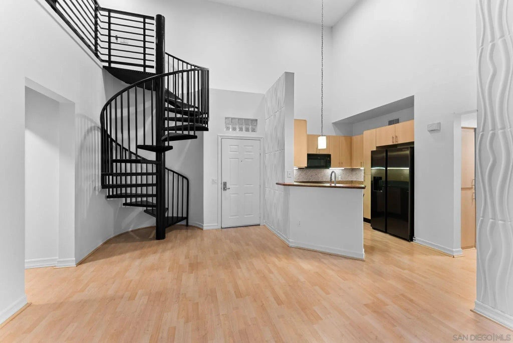 Welcome to this stunning 2-bed Union Square penthouse with a loft, offering stylish living. The bright living room features dramatic 18-foot ceilings, a cozy fireplace, and a private balcony, while a spiral staircase leads to a loft with direct access to a spacious rooftop deck—perfect for entertaining or relaxing.Positioned on the top floor with no neighbors above or on either side, this home offers unmatched privacy. Recent upgrades include brand-new carpet, fresh paint, and updated light fixtures, making it completely move-in ready. Amenities include 2 parking spaces with storage, fitness center, spa, sauna, EV charging station, and more. Located just moments from Balboa Park, Petco Park, Gaslamp, and an endless selection of dining and shopping. With a Transit Score of 79 and easy freeway access, commuting and exploring the city is a breeze.