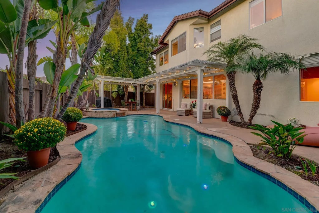 ***NEW PRICE!*** Welcome to this spacious 5-bedroom, 3-bath home with 3,296 sq. ft., ideally located on a corner lot overlooking Heritage Park. Featuring a sparkling pool, leased solar, and a great floor plan. This home combines comfort and convenience in the heart of 4S Ranch with just a short walk to Del Norte High School and close to other top-rated Poway Unified schools as well as restaurants, groceries, and shopping. The highly desirable layout includes a first-floor bedroom and full bath, perfect for guests or multigenerational living. Upstairs, a large loft offers space for movie nights, study sessions, or a cozy retreat. The primary suite impresses with its size and walk-in closet, while the upstairs laundry room with sink adds everyday practicality. Don’t miss this wonderful opportunity to own a spacious home in one of San Diego’s most sought-after communities.