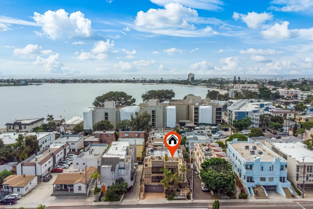 Welcome to your coastal sanctuary just steps from the shimmering waters of Sail Bay in Pacific Beach! This elegantly remodeled three-bedroom, three-bathroom townhome offers the perfect blend of modern luxury and Bay serenity—ideal as a primary residence, vacation getaway, or investment property. Spanning 1,520 square feet, the home was tastefully remodeled in 2019 with attention to every detail, featuring luxury vinyl plank flooring, quartzite slab countertops, custom cabinetry, and newer stainless steel appliances. Additionally, the refrigerator, washer, and dryer all convey, making this a true turnkey opportunity. Designed for comfort and sophistication, the home showcases LED lighting and a cozy gas fireplace that brings warmth and ambiance to the main living space. Upstairs, discover two spacious primary suites, each offering walk-in closets illuminated by expansive skylights and designed as bright, inviting spaces filled with natural light. Modern upgrades such as a new air conditioning unit, tankless water heater, and paid solar system ensure energy efficiency and peace of mind. The private roof deck provides a serene escape with sweeping bay views and a drip irrigation system—perfect for morning coffee, sunset gatherings, or entertaining under the stars. Situated in a boutique four-unit community with low HOA fees and two dedicated parking spaces, this residence embodies elegance, convenience, and the best of coastal living. Experience refined design, modern comfort, and the ultimate beach lifestyle at 3986 Riviera Drive.