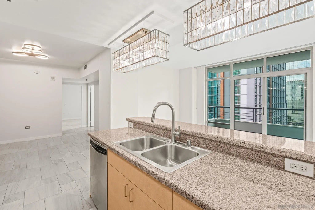 Welcome home to this beautiful, south-facing 2 bedroom condo on the 10th floor of Acqua Vista. Highly sought-after Little Italy location, with peek-a-boo views of the San Diego Bay from every room. Updated marble floors throughout, fresh paint, and custom lighting create a bright, warm environment to prepare dinner before heading to the balcony to enjoy the sunset reflecting off the downtown skyline. Primary bedroom boasts a HUGE walk-in closet, while dining room has floor to ceiling shelving, providing plenty of storage. A full-size washer and dryer in the bathroom, all stainless steel appliances, and at-your-service secured valet parking make living in the heart of Little Italy feel like home. Walking distance to all Little Italy has to offer: two weekly farmers markets, world-class restaurants, cafes, shops, waterfront park, San Diego airport, Santa Fe transit, Gaslamp and much more. Pets welcome. No smoking. Acqua Vista has all the amenities of downtown living, PLUS!: pool, spa, fire tables, BBQ area, fitness center, electric vehicle charging stations, package room with perishable package notifications, Amazon lockers, mandatory valet parking, 24/7 community attendant. Make this beautiful property yours today! 12-24 month lease. Increased deposit for pet. Rent includes water, trash, pool/spa, gym and all building amenities. No smoking. 1 valet parking space with additional available for $180/month. 650+ credit. No evictions or bankruptcies. Monthly income 2.5x rent required.