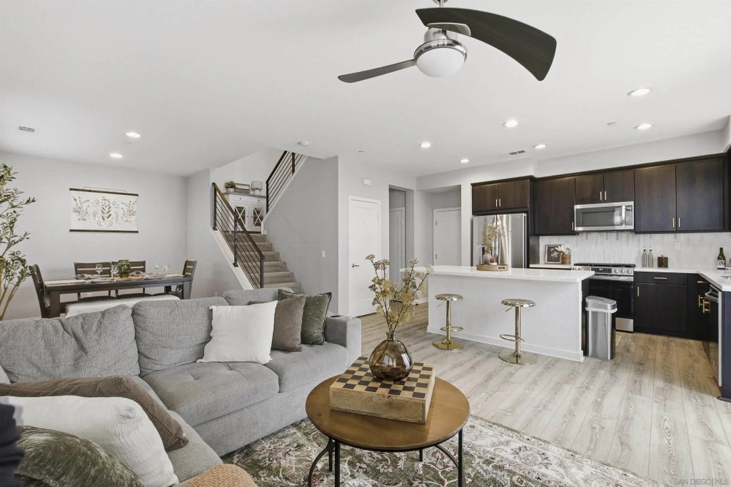 Welcome to this beautifully designed 4-bedroom, 2.5-bath condominium offering 1,692 sq ft of modern open-concept living. Built in 2016, this home perfectly blends style, functionality, and resort-style amenities — making it the ideal place to call home! Step inside to find bright, open spaces connecting the kitchen, dining, and living areas — perfect for entertaining or relaxing with family. The spacious kitchen offers sleek finishes and plenty of room to create and gather. The private patio invites you to enjoy morning coffee, weekend BBQs, or sunset dinners outdoors. Upstairs, the primary suite features a generous walk-in closet and spa-like bathroom for your daily retreat. Three additional bedrooms provide flexibility for a home office, guest space, or growing family. Enjoy easy living with a 2-car garage, and take advantage of the community’s resort-style features including a sparkling pool and spa, fire pits, grill areas, and beautiful shared spaces to unwind and connect. Located near shopping, dining, gyms, and entertainment at the nearby mall center, and with quick access to Highways 125 & 805, this home offers the perfect balance of relaxation and convenience. Whether you’re a first-time buyer or looking to upgrade your lifestyle — this condo delivers it all: modern comfort, community, and endless enjoyment.