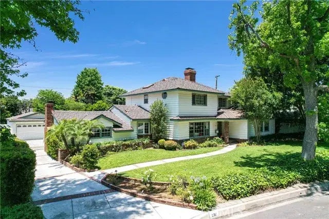 Nestled on a picturesque tree-lined street, this classic two-story home exudes timeless elegance and modern comfort. As you step through the welcoming formal entry, you are greeted by the warmth of hardwood floors and the charm of a brick fireplace in the spacious living room. Adjacent to the living room, the dining room provides the perfect setting for both grand formal occasions and intimate dinners. The light-filled, custom kitchen is a chefs dream, featuring elegant white cabinetry accented by stunning granite countertops. With double ovens and an indoor grill, culinary adventures await. The separate dining area, overlooking the serene backyard, is ideal for family meals. Conveniently located next to the kitchen, the mud room offers easy access to the backyard, as well as a practical three-quarter bathroom. The home's entertainment flow is enhanced by a unique family room, designed for casual gatherings. Complete with a full wet bar and a cozy fireplace, this space seamlessly connects to the outdoor pool area. Three of the six bedrooms are situated on the first floor, sharing a beautifully appointed bathroom with a separate tub and stall shower. One bedroom has been transformed into a fully equipped office, boasting a custom-built wood desk, an entertainment wall with cabinetry, a built-in surround sound system, and a custom stained-glass window. Ascending the elegant staircase, adorned with stained glass windows, you arrive at the second story. This level features an oak showcase nook perfect for displaying treasured items. The master suite is a serene retreat, complet