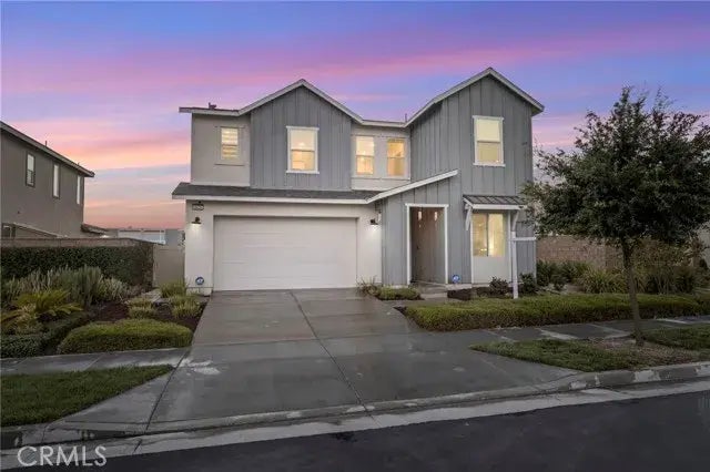 One of the best priced homes at the Shadetree Community in Ontario Ranch. Built by Landsea Development, this beautiful Elmwood, Plan 1 model is the perfect place to call home. Set on a premium corner lot, this two-story residence offers both privacy and an expansive side yard, ideal for outdoor activities. The community amenities include a large pool, a tot pool, a spa, a clubhouse, BBQ areas, pavilion, outdoor resting lounges with firepits, a dog park, and a tot lot. This home is also conveniently located near markets, restaurants, theaters, parks, shopping, and just moments away from the 15 and 60 freeways. Spanning 2,339 square feet of living space, this newer-built home features four spacious bedrooms and three bathrooms. The inviting first floor includes a great room and dining area, while the modern kitchen boasts quartz countertops, a large breakfast bar island, a walk-in pantry, and stainless-steel GE appliances. Tile flooring is beautifully laid throughout the entryway, kitchen, baths, and laundry room, while elegant laminate plank flooring completes the rest of the home. Upstairs, youll find a cozy loft, a separate laundry room, and the primary bedroom featuring a large walk-in closet. The primary bath is a serene retreat with quartz double sinks, a private toilet room, a separate shower, and a soaking tub. Notable home features include central A/C and heating, a whole-house fan, recessed lighting, and a tankless water heater. Solar panels by Sun Run, which have been purchased, are included with the sale of this home. The two-car attached garage provides ample spa