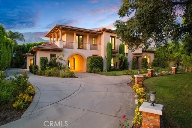 Welcome to the epitome of luxury living in the prestigious South Facing Santa Barbara Style Estate, where elegance and comfort seamlessly meets sophistication and tranquility in this 24-hour guard-gated community of Anoakia Estates. Nestled at the end of a serene cul-de-sac street, this exceptional estate boasts the finest features and a coveted, quiet location within the community. Upon entry, a grand foyer greets you, adorned with a magnificent spiral bridal staircase and an awe- inspiring over 20-foot high ceiling adorned with a beautiful grand chandelier, setting the tone for the elegance that permeates this home. The private grand driveway, flanked by eight majestic palm trees and illuminated by eleven column lights, leads to an entrance that promises sophistication and grandeur. Step inside to discover an elegant formal dining room strategically positioned in the heart of the residence. For entertainment and relaxation, the family room seamlessly merges with a theater area, complete with a large projection screen, offering an all-in-one experience. The gourmet kitchen, a culinary haven, showcases a spacious marble center island and a top-of-the-line stainless steel Viking refrigerator with a double oven. The main level boasts a luxurious primary suite accompanied by an office/library, featuring an opulent Kohler Numi toilet. Upstairs, discover four additional primary suites, each exuding comfort and lavishness, along with a separate built-in office dedicated solely to the master suite. Unwind in the master suites' indulgent marble jacuzzi bath tub, accompanied by the