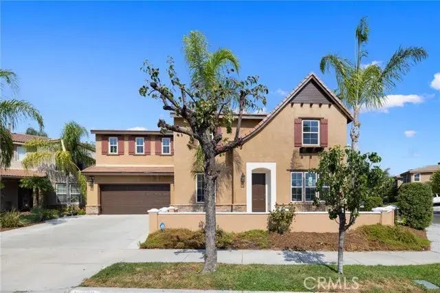 Enchantingly Stylish Home with Two Primary Suites and Party-Perfect Backyard! Majestically situated on a corner lot in an established community, this newly updated 5BR/4.5BA, 4,021sqft property enjoys ultimate convenience with close proximity to Harada Heritage Park, Cedar Creek Park, Eastvale Elementary School, River Heights Intermediate School, and Eleanor Roosevelt High School. Affording a whimsical edge, the home captivates with Spanish architectural influences, swaying palm trees, fabulous low-maintenance landscaping, and a dazzling front courtyard. Boasting a light and bright interior, the residence ensures easy entertaining with an openly flowing layout, soothing neutral tones, recessed lighting, wrought iron spindle staircase, a luminous living room, and a chic dining room. Holiday entertaining is a cinch in the open concept gourmet kitchen. Create decades-old recipes and fresh Pinterest goodies with stainless-steel appliances, granite countertops, wood cabinetry, built-in wall oven, 5-burner gas range, butlers pantry, breakfast nook and an oversized island. As guests sit by the fireplace of the adjoining family room, you can easily remain part of the conversation. Nestled on the upper-level, the enormous primary bedroom impresses with a sitting area, huge walk-in closet, and an en suite featuring a soaking tub, dual vanities, and a separate shower. Two extra bedrooms have a J-and-J bathroom, while the fourth bedroom has nearby access to a full guest bathroom. In addition, a spacious bonus room which can be your family entertainment room. Finally, the lower-level en