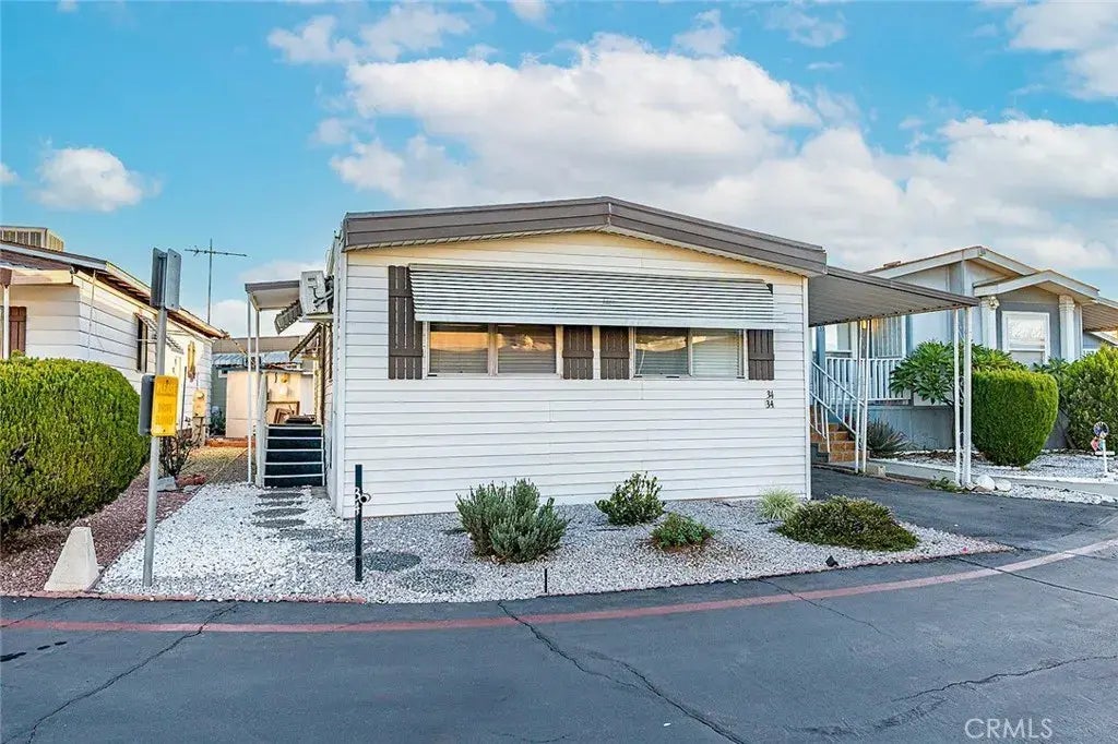 Completely remodeled single-story, 3 bedrooms, 2 baths home located in the all-age community of Fountain Blue Mobile Home Park #34. Each room has individual split air condition units. Beautifully landscaped front and back yard with mature fruit trees. Includes new refrigerator; stackable washer and dryer are included in the sale. 2-car tandem parking and a storage shed, like having a garage. Excellent location. Low rent and low utilities with 24-hour surveillance. Near Starbucks, hospitals, schools, shopping, freeway access, and many other supporting facilities.