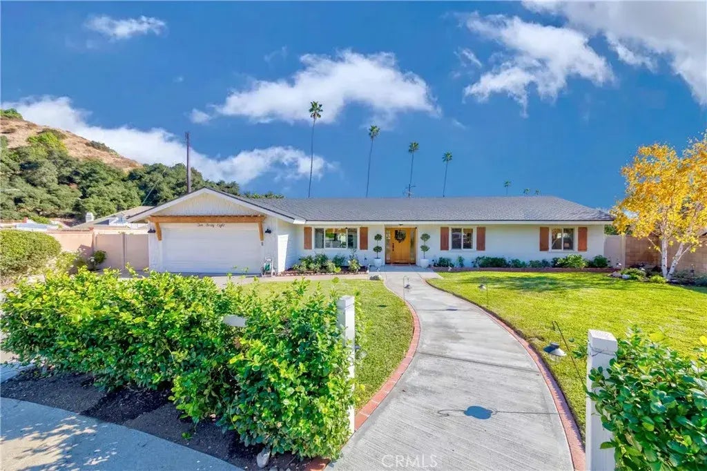 North Glendora Dream Home! Nestled on an expansive lot at the end of a tranquil cul-de-sac in Glendoras most coveted neighborhoods, this charming home offers the perfect blend of elegance and comfort. With 1,973 square feet of living space, this open-concept residence features three bedrooms, a loft, and two bathrooms, all set on a generous 12,772 square foot lot that ensures privacy and room to roam. A beautiful front porch welcomes you into the formal entry with hardwood floors, a formal living room with picturesque front windows, a family room with amazing high ceilings, and a beautiful brick fireplace. The heart of the home is the kitchen, boasting an island with a sleek quartz countertop, stainless appliances, and a modern design that will inspire your inner chef. French doors open to the backyard. This backyard is an entertainers paradise, featuring a beautiful swimming pool, a spacious covered patio, a lush lawn, and a pit area. Whether hosting summer barbecues, pool parties, or simply enjoying a quiet evening outdoors, this space offers the perfect setting. The home has been thoughtfully renovated with modern French farmhouse touches, including high cathedral ceilings with newer light fixtures that create an airy and inviting atmosphere. Carpet and hardwood floors are in excellent condition, while the bathrooms have been tastefully updated with high-end faucets, cabinetry, and mirrors (owners bathroom includes smart toilet with built in bidet). Other notable features are updated plumbing and attic insulation. The front and backyard include top-notch turf planting, h