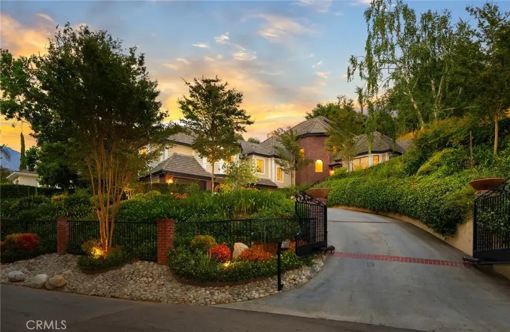 Welcome to this breathtaking Tudor-style masterpiece built in 1991, nestled in the serene and private enclave of North Monrovia. This gated property spans 1.44 acres of tranquil beauty, offering unparalleled luxury living amidst nature's splendor. Protected by a concrete tile roof and an interior fire sprinkler system, this home is designed with both safety and durability in mind. As you enter this grand estate, you are greeted by a magnificent entryway adorned with rich marble flooring that sets the tone for the luxury within. The main level features an array of sophisticated spaces, including a formal living room, an elegant dining room, a cozy family room, and a versatile office that caters to your professional needs. Enjoy the ambiance of the three beautiful fireplaces located in the formal living room, family room, and primary suite. An additional upstairs family room provides a perfect space for relaxation or can be easily converted into a fourth bedroom. The chefs kitchen is a culinary dream, featuring stainless steel appliances, gleaming granite countertops, and a spacious island that invites both meal preparation and casual gatherings. The adjacent formal dining room offers a refined setting for hosting memorable dinners with family and friends. Retreat to the lavish primary suite, where luxury and comfort combine seamlessly. This sanctuary includes two expansive walk-in closets, a serene sitting room, and a spacious en-suite bathroom designed for ultimate relaxation. Step outside to your private oasis, where a saltwater pool and spa feature a cascading waterfall t
