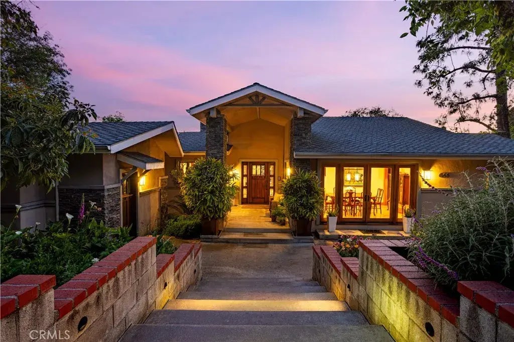 Nestled in a north Monrovia enclave this impressive residence commands breathtaking 180-degree panoramas stretching from the vibrant cityscape of downtown Los Angeles to the serene silhouette of Catalina Island on the horizon. A picturesque wisteria-draped trellis welcomes you as you gracefully descend the steps to the inviting front entrance. The main level unfolds into a generously proportioned living room, elegantly appointed with a warm fireplace framed by custom shelving and seamless access to the expansive deck an ideal spot for al fresco relaxation and soaking in the stunning vistas. Entertain with sophistication in the formal dining room, which conveniently connects to a meticulously climate-controlled 900-bottle wine cellar, perfect for the discerning enthusiast. The expansive kitchen is a culinary masterpiece, anchored by a substantial center island and boasting professional-grade stainless steel appliances, a casual breakfast bar, and a sun-drenched breakfast nook, all while framing captivating views. Tucked away for ultimate tranquility, the primary bedroom is a private retreat featuring its own fireplace, a spacious walk-in closet, and a luxurious en-suite bathroom complete with dual sink vanities, an oversize tub, and a separate shower. Direct access to the deck further enhances this serene sanctuary. A versatile office space (easily convertible to a 4th bedroom), a full bathroom, a powder room, and a well-equipped laundry room with ample cabinetry complete the thoughtfully designed main level. The lower level provides additional living space with two well-si