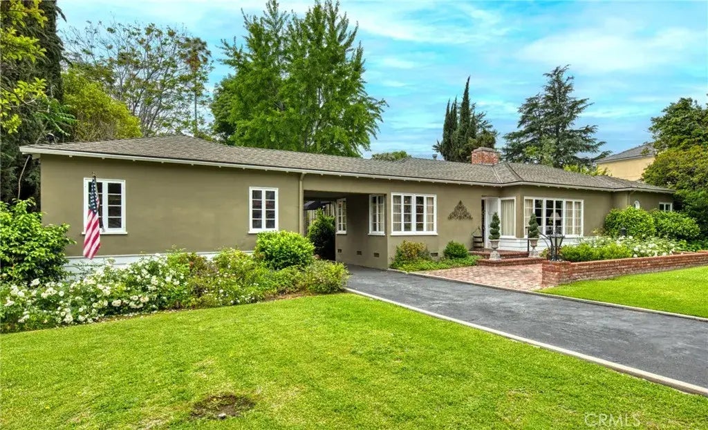 This single-level ranch-style home, on the market for the first time in over 50 years. Nestled on a sprawling 19,566 square foot lot, this residence exudes vintage charm and presents a blank canvas for your vision. Step inside to discover a formal living room bathed in natural light from a wall of windows and anchored by a cozy fireplace. The formal dining room seamlessly connects to the kitchen and a spacious great room, complete with another fireplace and sliding doors that invite the outdoors in. The oversized primary bedroom is privately situated at the rear of the property, providing a tranquil retreat. Two additional well-proportioned bedrooms and bathrooms are conveniently located towards the main living area. The true gem of this property lies beyond the walls your own personal park. The expansive, level lot with lush green grass offers endless possibilities for outdoor enjoyment, from entertaining guests to simply relaxing in your private oasis. Imagine the potential: expanding the existing home, adding a sparkling pool, building an ADU for extended family or rental income, or even constructing a brand-new custom residence to create lasting memories. Practical amenities include a dedicated utility room and a detached two-car garage with ample driveway parking. Adding significant value is the property's location within the highly acclaimed Arcadia school district.