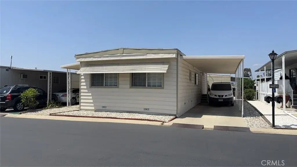 This double wide manufacture home located in the quiet and peaceful community with lots of amenity funs, including community swimming pool, hot spa, sauna, pool tables, club house with kitchen, guest parkings. Best location of this unit just across to the club house. Featuring: 2 large oversized suites, remodeled kitchen, laminated floor, laundry inside, car port can park up to three cars. And a newer storage in the rear of lot. Walking distance to markets, restaurants, bus stops, post office and shoppings. Over 20 years home owner retired and moving back to home country, sale includes refrigerator, washer, dryer and furniture.