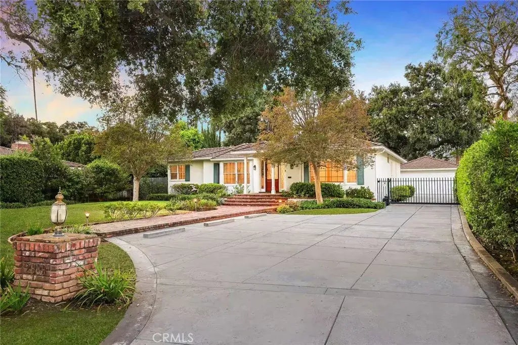 Welcome to this elegant south-facing mid-century custom-built ranch home, privately nestled behind tall hedges on a spacious lot with an expansive front yard. Located in the award-winning San Marino School District, this beautifully maintained residence offers timeless charm, thoughtful updates, and modern comforts. Enter through the formal entry into a sun-drenched living room featuring a sophisticated marble fireplace, romantic bay window, recessed lighting, and gleaming hardwood floors. The adjacent formal dining room is framed by oversized windows and leads into a chefs kitchen complete with granite countertops, custom wood cabinetry, double ovens, a gas cooktop, breakfast bar, and updated recessed lighting. A bright family room opens seamlessly to the kitchen and is bathed in natural light from skylights and French doors, which lead to a serene patio draped in wisteriaideal for indoor-outdoor entertaining. The spacious primary suite includes wall-to-wall closets, large windows, and a private en-suite bathroom. Two additional generously sized bedrooms share a full hall bath with dual sinkseach bedroom with its French door and floor-to-ceiling windows offering tranquil backyard views. A third full bathroom is conveniently located near the kitchen and laundry room, with direct access to the backyard. The lush backyard retreat features a custom-designed sparkling pool and spa surrounded by mature trees and colorful landscapingperfect for private relaxation or entertaining. A detached guest house behind the 2-car garage includes its own kitchen and bathroom, offering flexib