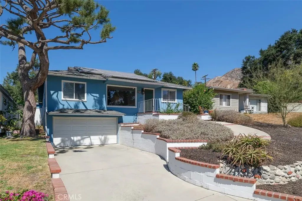 A wonderful spacious mid-century Altadena home situated in a beautiful neighborhood overlooking the tree lined Mount Lowe Park. City Views with a park-like setting all still fully intact. This special home features 2 bedrooms + Den that could be 3rd bedroom along with a bonus room perfect for in- home gym or office along with a bathroom and shower attached to subterranean double garage. There is also owned solar panels with huge monthly electrical savings. Other features of this property include, living room with great views and a fireplace, galley kitchen with newer appliances and dining area. Laundry room with fantastic built-in storage/pantry. Separated den with a large closet and built-ins with direct access to backyard. Large primary suite with dressing area with built-ins, sky light and a large primary bathroom with walk-in shower. Hard wood flooring throughout. Tankless water heater. Newer air conditioning and heating unit. Huge private backyard with spacious concrete patio for entertaining large gathernings along with second patio with built-in arroyo stones under beautiful mature trees. Come and see this great house.