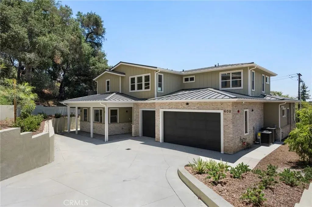 Perched atop Sierra Madres coveted north hillsidewhere new construction hasnt appeared in decadesthis brand-new custom home reimagines the classic contemporary in a crisp palette. The upper level is clad in board-and-batten siding, while a standing-seam metal roof crowns both the welcoming porch and the three-car garage, seamlessly integrated into the faade. Clean-lined, oversized windows and simple trim frame sweeping canyon and city-light vistas beneath the soaring silhouette of Mt. Wilson. Inside, 3,783 square feet of living space unfolds under vaulted ceilings punctuated by designer light fixtures. Four bedrooms and four-and-a-half baths flow from an open-plan great room into a gourmet kitchen complete with luxurious quartz countertops and abundant natural light. Every surface and sightline has been thoughtfully arranged to enhance the homes serene surroundings. Situated at the north end of Baldwin Avenue in one of the West Coasts most charming, family-friendly towns, youre just a few minutes stroll from downtown Sierra Madres boutiques, cafs, and fine dining, and a short drive from Arcadia and the 210 Freewayputting Pasadena and Downtown L.A. within easy reach. For those seeking a different layout or style, our sister homes at 620 Baldwin Court and 608 Baldwin Court offer their own fresh interpretations of modern farmhouse living.