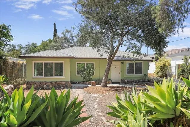 PRICE IMPROVED!! Incredibly private, three bedroom, one and a half bath traditional single story home in Sunland. Situated on a wonderful, residential street in a fantastic pocket and set well off the street. This is your own exclusive oasis! Nicely updated throughout. PAID/OWNED SOLAR DUAL PANE MILGARD WINDOWS NEW ROOF NEW ELECTRICAL PANEL COPPER PLUMBING - ALL NEW DRAINAGE. Amazing lot, with a long, PRIVATE DRIVEWAY to the house. Approximately 1083 square feet of living space on a nearly 11,000 sq foot lot. Oversized two car detached finished garage with separate split system hvac has tremendous ADU potential as well. Spacious front and back yards with mature landscaping provide unlimited possibilities. Other updates include newer HVAC, bamboo flooring, newer fixtures, solar skylights, R30 attic insulation, LED lighting and so much more. Dont miss this perfect opportunity to make this your forever home!