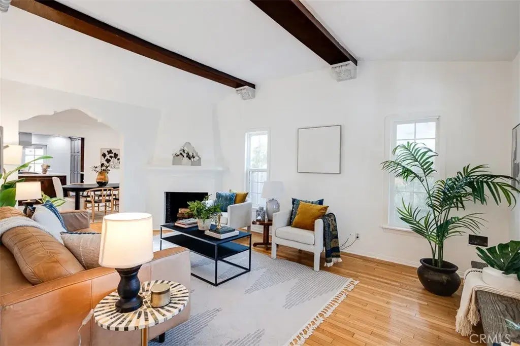 Discover a true Crestview gem at 1764 S Garth Ave this 3 bedroom / 2 bath / 1428 sq ft main house + 314 sq ft casita with full bathroom, is a beautifully updated Steinkamp home combining modern elegance with sustainable features. Located in a walkable neighborhood near top dining, shopping, and entertainment, this home offers the best of Los Angeles living. Step through a professionally landscaped front yard with native plants and palms to a charming Spanish tile porch. Inside, enjoy a warm and open living space with a working fireplace. The remodeled kitchen boasts high-end appliances, a center island, ample storage, and French doors leading to the backyard. The outdoor space is perfect for entertaining, featuring a gas BBQ, multiple seating areas, lush landscaping, and a Spanish-style casita. Olive and citrus trees, along with raised garden beds, create a gardeners paradise. The primary suite includes a spacious bedroom, walk-in closet, and a stunning bath with dual sinks and a glass shower. The home also offers an EV charger, a two-car garage with a motorized gate, and parking for at least four vehicles. The garage is equipped with a professional organization system, shelving, and a workstation. Above the garage, a lovely 300+ sq ft casita with a full bath, and large balcony makes an ideal guest suite or home office. Additional features include a brand-new roof, new HVAC, tankless water heater, solar panels, dual-pane windows, hardwood floors, and attic storage. Centrally located, this sophisticated and eco-friendly home offers convenience, comfort, and style. Dont miss