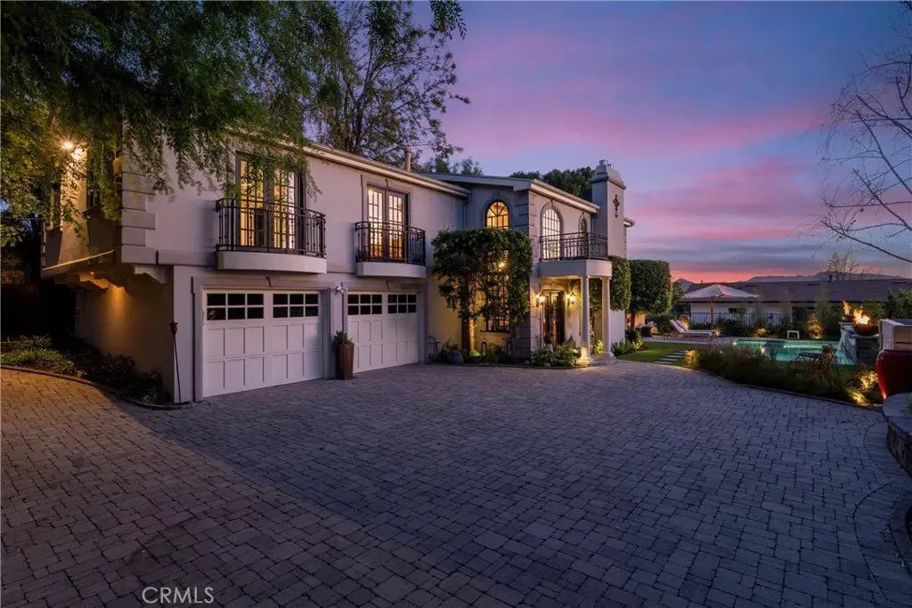 A Hidden Georgian Masterpiece with Breathtaking Views. Tucked away at the end of a newly resurfaced private driveway, this extraordinary two-story view estate offers unparalleled privacy and timeless elegance. A stunning example of Georgian architecture, the home showcases exquisite corbels, quoins, and Juliet balconies, embodying classic sophistication. A spacious parking pad accommodates multiple vehicles, leading to a two-car garage with a sleek poly floor finish. A newly installed wrought iron gate and fence enhance both security and privacy, further reinforced by a surveillance system from Access Masters. Meticulously upgraded and maintained, the home boasts all-new windows and sliding doors by California Deluxe Windows, a stately new front door from Pinky's Doors, and a fully updated electrical panel. Copper plumbing throughout is complemented by two new tankless water heaters and a premium water softener system. The living rooms newly heated tile floors add an extra layer of comfort, while two upgraded gas fireplaces create inviting spaces for relaxation and entertaining. The chefs kitchen seamlessly blends luxury and functionality, featuring a new Sub-Zero refrigerator/freezer and wine fridge, along with new JennAir oven, range, dishwasher, and hood. Restored cabinetry and new tile floors accentuate the black granite countertops, offering a refined aesthetic. Designed to maximize breathtaking city and valley views, the upper level boasts a bright, open-concept kitchen, dining room, and family room, all opening to a spacious balconyideal for alfresco dining and sunse