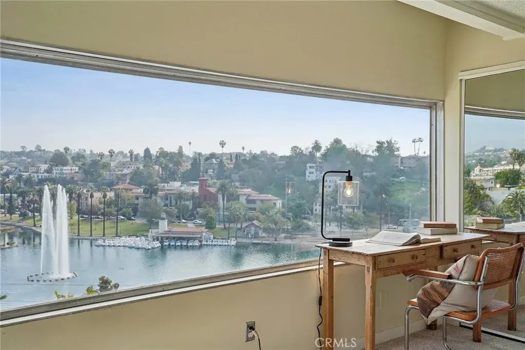 Welcome to 1701 Clinton St., an exquisite mid-century modern home designed by renowned architect Allyn Morris. This stunning residence is nestled in the vibrant heart of Echo Park, offering unparalleled panoramic views of Echo Park Lake, the majestic mountains, and the sparkling city lights of downtown Los Angeles. As you step inside, you are greeted by an open-concept living space that is bathed in natural light, creating an inviting atmosphere perfect for both relaxation and entertaining. The modern kitchen is a chef's dream, featuring stainless steel appliances, a movable island for added versatility, and breathtaking views that inspire culinary creativity. The upper level of the home boasts generously sized bedrooms, each designed as peaceful retreats. The primary bedroom is a standout feature, offering sweeping views of the lake that provide a serene backdrop for your daily life. The updated bathroom is bright and airy, enhanced by a skylight that fills the space with natural light. Additional highlights of this property include dedicated parking, ample storage solutions, and access to a newly renovated teardrop-shaped pool, perfect for enjoying sunny days and warm evenings with family and friends. Conveniently located just minutes from Michael Park Lake, Glendale Boulevard, and the vibrant shops and restaurants of Sunset Boulevard, this home combines the tranquility of Echo Park living with easy access to urban amenities. Dont miss the opportunity to make this exceptional mid-century modern retreat your own. Schedule your private tour today and experience the allure o