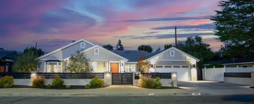 Presenting a modern Ranch residence in the famed Equestrian District, a horse friendly neighborhood known for its charming walkability and quick access to the studios. Newer construction frames this remarkable single-story home that spans over 3,500 sqft on an impressive double flat lot over acre. This home was lovingly rebuilt in 16 and a second phase addition completed in 23 by current owners. Refined casual elegance expressed in expansive open living spaces and a thoughtfully designed floor plan. High ceilings including a vaulted ceiling in the formal living room with its sleek fireplace. Tray ceilings in many parts of the home give it a true custom feel. The family room with 2nd fireplace flows into the chefs kitchen with center island showcasing the stunning Quartzite counters & breakfast bar. Top of the line appliances including a 42 Sub-Zero and a 48 BlueStar range plus a walk-in pantry. Adjacent is the spacious formal dining room. The home continues to unfold with 5 bedrooms, 2 of which are en-suites. Primary suite offers a walk-in closet, deep soaking tub and double French doors opening to the garden. The 5th bedroom is currently used as a sound studio with isolation VO booth. This is real Southern California living! Throw open the double French doors and enter the outside retreat. A grassy backyard ringed with a mature privacy hedge encloses several fruit trees, an alfresco dining area, a saltwater Pebble Tec pool plus 6-person spa with 2 waterfalls, a gas firepit, and a covered patio lounge, all of which give this backyard a true resort feel. Notably, the proper