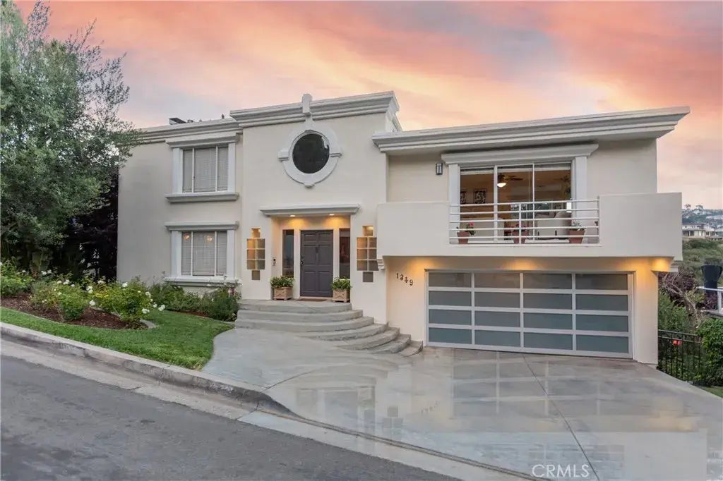 Welcome to 1349 Cerritos Dra beautifully positioned home tucked into the hills of Laguna Beach, offering scenic views, thoughtful design & a flexible layout that fits a variety of lifestyles. Located on a quiet cul-de-sac with no through traffic, you'll appreciate the peaceful setting just high enough above the village to avoid parking woes & congestion that come with living in a vacation destination. This 4-bed, 3.5-bath home spans 3,116 sq ft on a 7,070 sq ft lot. A unique curved entry & oversized circular window create a striking first impression. A spacious 2-car garage with direct access adds convenience & storage. Inside, natural light floods the open living spaces. Natural stone, marble & wood floors create a relaxed yet refined atmosphere. The layout is both open & functional, with distinct areas for gathering & retreat. Thanks to its elevated location & ocean-close setting, the home enjoys refreshing coastal breezes year-roundkeeping the interior cool & comfortable. The kitchen is well-equipped with stainless appliances, wraparound granite counters & ample storage. Large picture windows invite the outdoors in, while the adjacent dining area opens to a generous balconyperfect for morning coffee or sunset dinners. Upstairs, bedrooms are generously sized & full of natural light. The primary suite feels light-filled & private, with serene views. Bathrooms feature dual vanities, neutral finishes & solid storage. A lower-level bonus room offers flexibilityideal for a guest suite, home office, or family room. Step outside to a private backyard retreattiered, landscaped, &