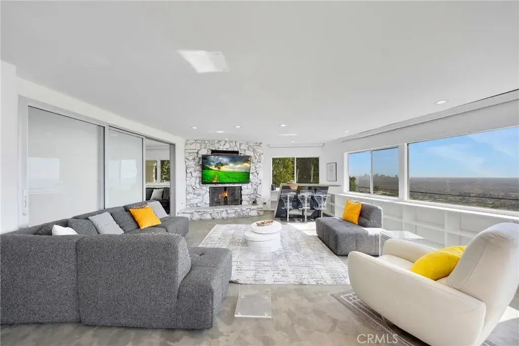 Experience the quintessential Hollywood Hills lifestyle in this 1962 Mid-Century Modern gem. Designed by a renowned French architect, this private hilltop residence offers breathtaking panoramic views stretching from downtown Los Angeles to the Pacific Ocean. The open-concept living space is filled with natural light, with a wall of windows that frame the stunning city skyline. A striking stone fireplace serves as the centerpiece of the living area, while a built-in wet bar adds a touch of vintage charm, perfect for entertaining. This home features two oversized bedroom suites, each with spacious closets, private lounge areas, and spa-like ensuite baths. A third convertible bedroom opens directly to the resort-style pool, seamlessly blending indoor and outdoor living. The outdoor spaces are designed for relaxation and entertainment, with a sparkling swimming pool, spa, barbecue area, and a poolside terrace that captures breathtaking sunsets over the hills. Whether hosting guests or enjoying a quiet evening under the stars, this home provides the perfect balance of comfort and luxury. A private driveway leads to a two-car garage, offering both security and convenience. An in-home laundry area and multiple outdoor spaces enhance the functionality of this exceptional lease opportunity. Nestled in the prestigious Hollywood Hills, this one-of-a-kind home is just minutes from Sunset Boulevard, fine dining, and worldclass entertainment.