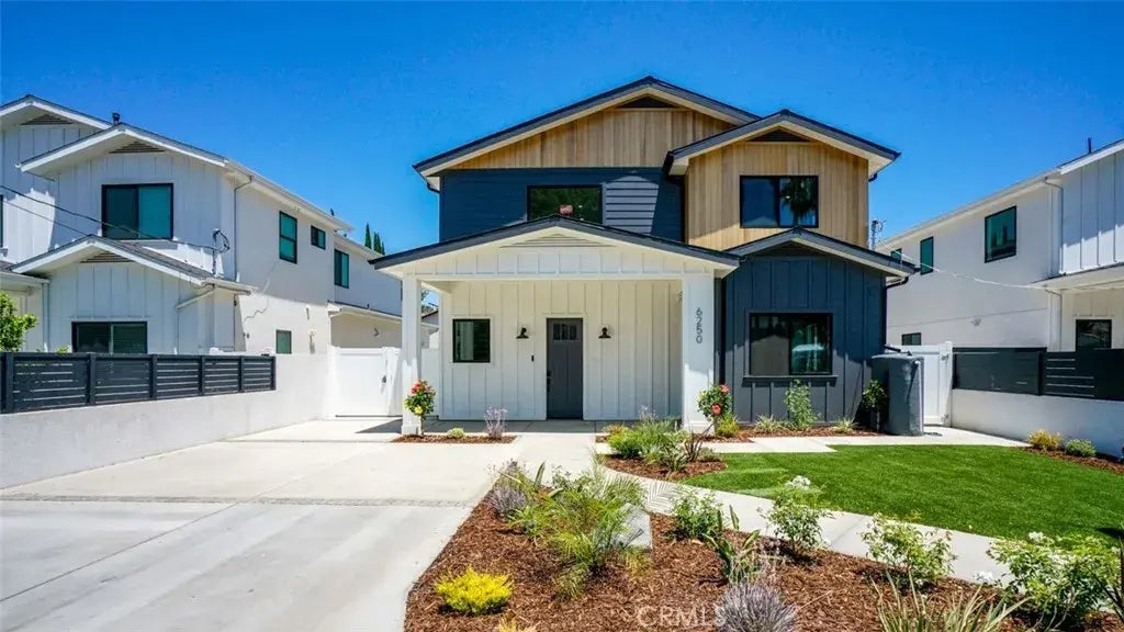 This absolutely stunning home is new construction that has just been completed! Built new from the ground up, this two story modern farmhouse is the perfect combination of prestige, beauty, and elegance! This 4 Bedroom 4 Bathroom house is simply gorgeous inside and out! Upon entering this house, you will be taken away by the extra tall ceilings, bedroom on the first floor with its own bathroom, half bathroom, and huge great room consisting of the Living Room with fireplace, dining room, and the kitchen. The kitchen is the highlight of this space with a huge island, high end appliances, and large walk-in pantry. The open stairs lead to a large open loft perfect for a home office, den, or sitting area. Once upstairs there are 2 more bedrooms, laundry room, large full bathroom, and the primary bedroom. This massive primary bedroom is an elegant space with a large walk-in closet, balcony for quiet time with a good book and cup of coffee, and the primary bathroom with walk-in shower and freestanding tub. The exterior is beautifully manicured with great curb appeal, and has a finished detached garage in the rear. This property is elegant, charming, and full of character and detail! The lot is almost 9,000 square feet, and consists of this beautiful home, detached garage, and LOTS of additional space for possibly a pool or maybe even an ADU! This is the third and final house in this development, and we saved the best for last! This house is nestled in between two other new house, and the new finished on this property really set it apart from the others! This property will not last