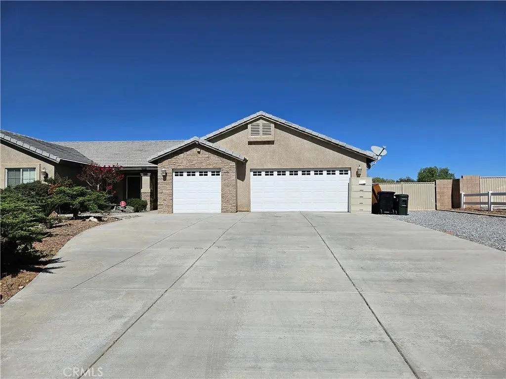This beautiful 4 bedroom 2 bathroom home is located in a wonderful community on a well maintained street and has lovely curb appeal. The house boasts 2158 square feet of great living space on a large 18700 square foot lot. The living room is spacious and has a fireplace with a wood burning stove inside. The kitchen is perfect for making delicious family meals or special treats for entertaining your guests there is a newer dishwasher and room for an eat in area. The primary bedroom has a walk-in closet and an attached full bathroom with a spa bathtub. The additional bedrooms are comfortably sized and the laundry room is conveniently located in the hallway. There is central air and heat for those warm days and chilly nights. The back yard has a covered patio and is low maintenance with a couple of fruit bearing trees. There are 2 garages with space for 3 cars as well as RV parking on the side of the house. This is a wonderful opportunity to own a beautiful home in Apple Valley.